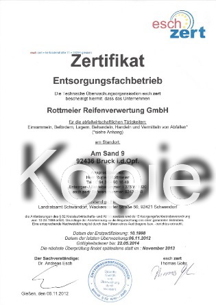 Das aktuelleZertifikat Entsorgungsfachbetriebliegt vor und kann bei Bedarf jederzeit